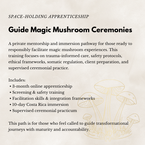 Specializing in ancestral healing, energetic upgrades, and sacred ceremonies, India supports individuals in healing generational blockages and rediscovering their innate wisdom. As a facilitator working with cacao and magic mushrroms, she leads deeply intentional journeys that cultivate profound connections to self, nature, and spirit.